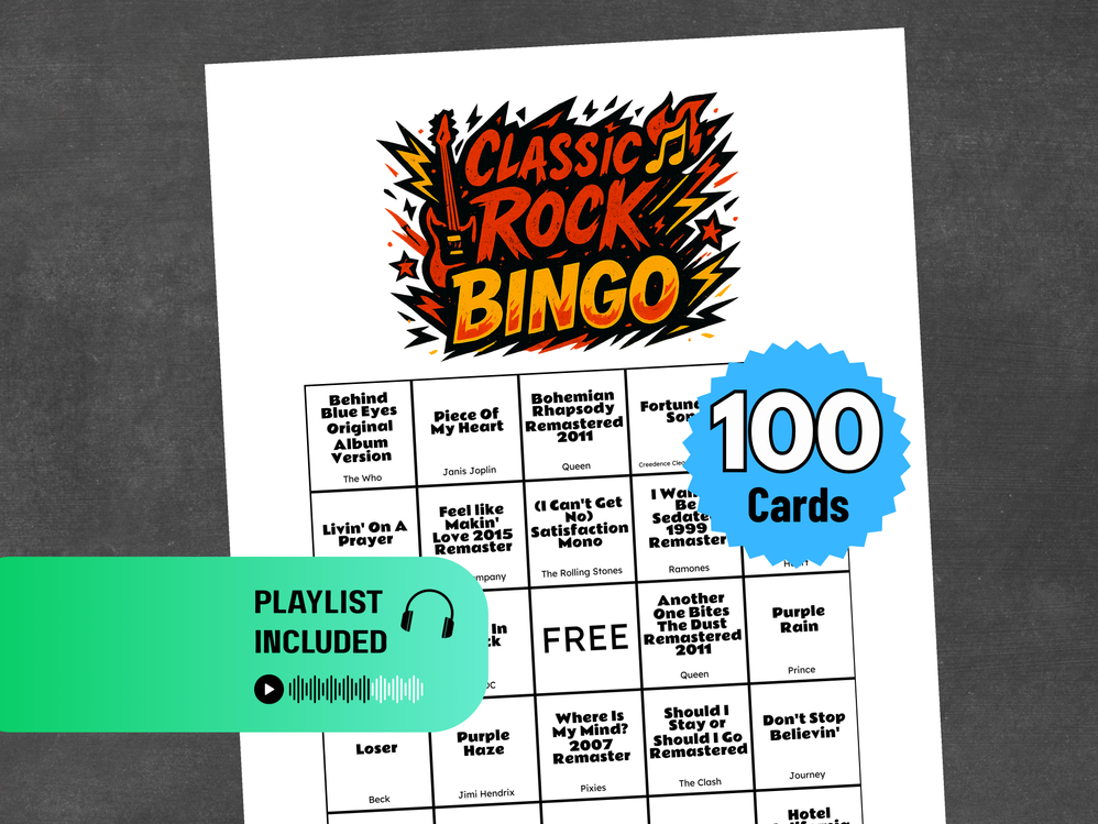 Turn it up the Volume and fun with Custom Music Bingo! Pick any pubic Spotify playlist and make a custom game instantly. We'll generate a ready made - custom bingo sheet with randomize squares and instructions. Download, then just print and play for parties, birthdays, game night, classrooms, or DJ events.